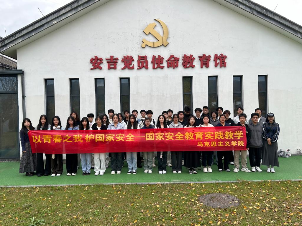 为深入贯彻党的二十届三中全会精神,以习近平总书记总体国家安全观和习近平总书记关于加强国家安全教育的重要指示批示精神为指导,动员引领青年大学生坚定不移走中国特色国家安全道路,进一步筑牢国家安全防线。11月8日至9日,我校马克思主义学院的梅潇潇、蒋梦园、高翔三位教师带领机电工程学院、水利工程学院共34名学生,前往湖州市安吉县组织开展了主题为“以青春之我 护国家安全”的国家安全教育实践教学活动。