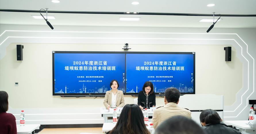 2024年11月14日,学校成功举办浙江省堤坝蚁患防治技术培训班。学校党委委员吴玲洪、水利工程学院院长金斌斌出席了开班仪式。吴玲洪强调,水利工程中的白蚁危害是国家水安全的重大隐患,此次培训是响应国家号召、服务水利行业的重要行动。