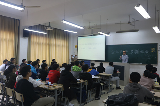 第一次专题报告邀请了浙江省水电建筑安装有限公司的副总经理张海深导师,张总从企业的角度,结合自身多年的工作经历,以推荐阅读的几本书展开,告诉同学们如何培养良好习惯,树立高效人生目标。第二次专题报告由浙江艮威水利建设有限公司总经理陈惠达导师主讲,陈总强调了公司对员工的要求,向同学们传达了“按价值定薪”的人才观。浙江江南春建设集团有限公司总工程师宋翔导师为大禹2017带来第三场导师报告,他强调江南春是个年轻的公司,可以与新一代水利人一起成长,同时他提出不希望年轻人太早定型,当下最主要任务是学好专业知识。