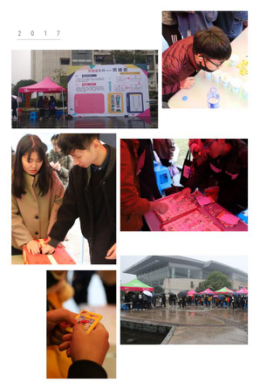 “风情街”是社团巡礼月中最能感受社团活力、融入社团生活的活动,参加者首先需到签字处签字并领取“集点券”,随后到每个社团摊位前完成游戏项目,即可获得一个印章,集满10个印章可前往“兑奖处”进行抽奖。虽然活动当天阴雨不止,但是参加活动的社团和同学们热情高涨,各个社团都展现出自己的特色游戏,如爱心社的“你画我猜”、电影社的“看片断识电影”、音乐爱好者协会的“听歌识曲”、英语社的“听写单词”等活动,吸引了众多同学,每个摊位前都挤满了人,兑换到奖品的同学更是开心的在兑奖处合影。