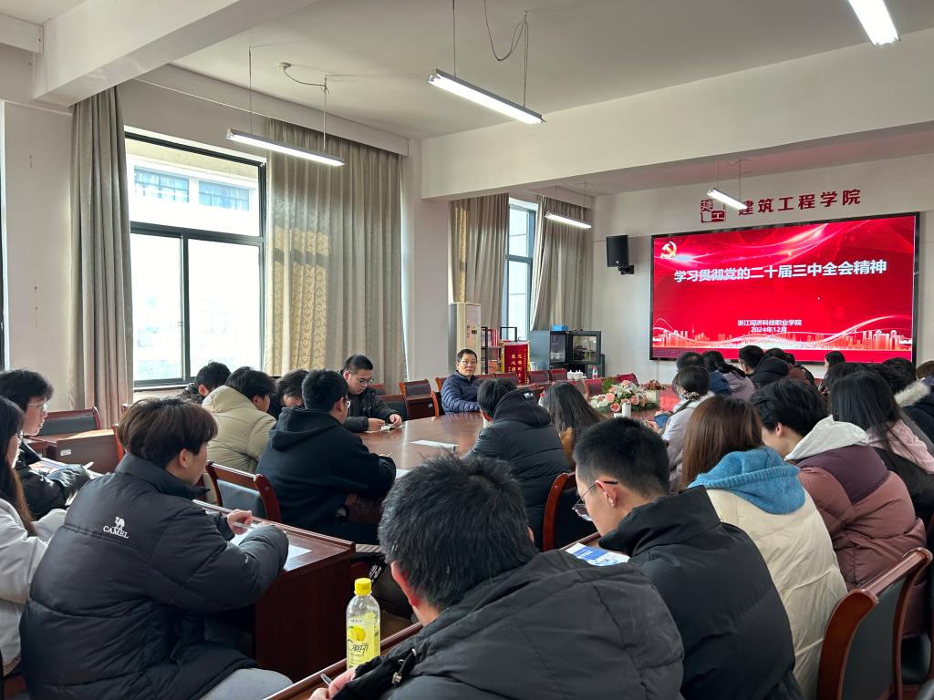 12月31日,学校党委副书记、副校长吴宏平在钱江楼313会议室为建筑工程学院师生讲授《学习贯彻党的二十届三中全会精神》专题党课。
