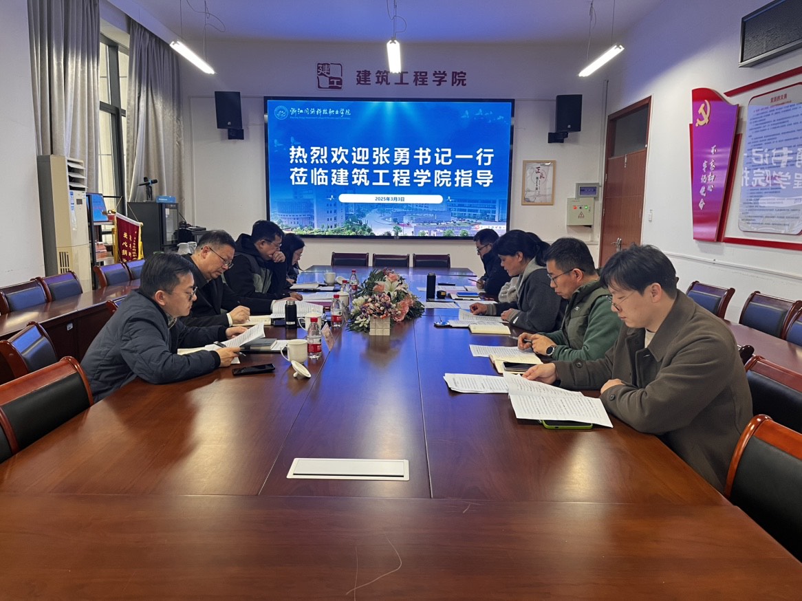 3月3日,学校党委书记张勇到建筑工程学院实地调研指导学院工作。学校党委委员、组织部部长楼骏,办公室主任周恺,组织部副部长杨昭敏陪同调研,建筑工程学院全体党政领导班子成员参会。