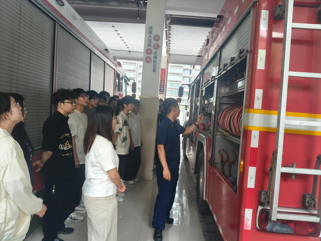 在消防员的引导下,大家首先参观了消防救援站的各类设施设备。从功能强大的消防车到各种精密的救援工具,消防员们耐心地为大家讲解每一种设备的使用方法和作用,让入党积极分子们对消防工作有了更加直观和深入的了解。