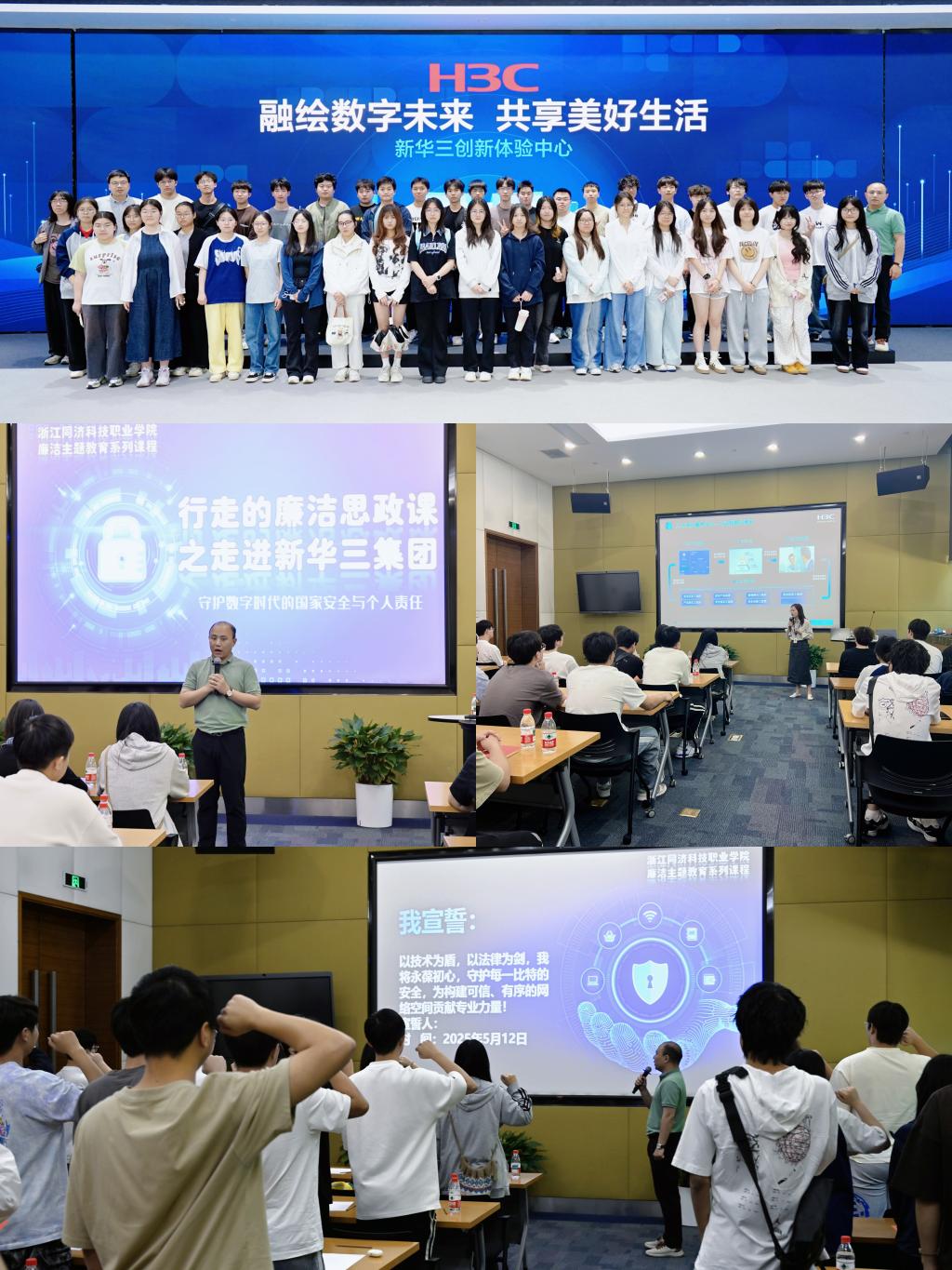 为深化廉洁教育实效,将思政课堂融入专业实践,5月12日下午,学校组织学生走进新华三集团杭州总部,以“行走的廉洁思政课”形式,将廉洁教育与职业素养要求相结合,为学生职业生涯启航注入清廉底色。