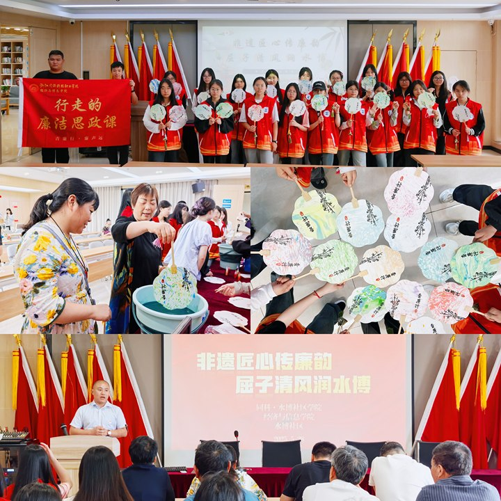 为深化廉洁教育内涵,创新思政育人模式,让抽象的道德理念在生动实践中扎根,5月28日上午,经济与信息学院“行走的廉洁思政课”第四期活动走进同科·水博社区学院,以端午节为契机开展沉浸式廉洁教育,带领学生与社区党员在非遗手作中感悟屈原廉洁精神,推动廉洁文化入脑入心。