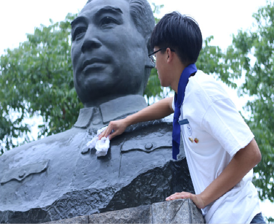 2017年9月15日中午,共青团“翔宇”大学生骨干精英学校第四期全体班委聚集在周恩来铜像广场,利用午休时间清洁、擦拭周恩来铜像广场,迎接新同学的到来。