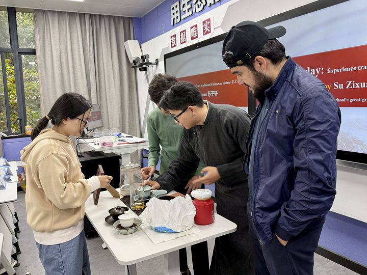 水利学院邀请校友以茶艺教学的形式对接留学生群体,既发挥了校友资源优势,也为留学生打开了感知中国文化的新窗口,未来将持续搭建跨文化交流平台,让非遗技艺成为中外友好交流的纽带。