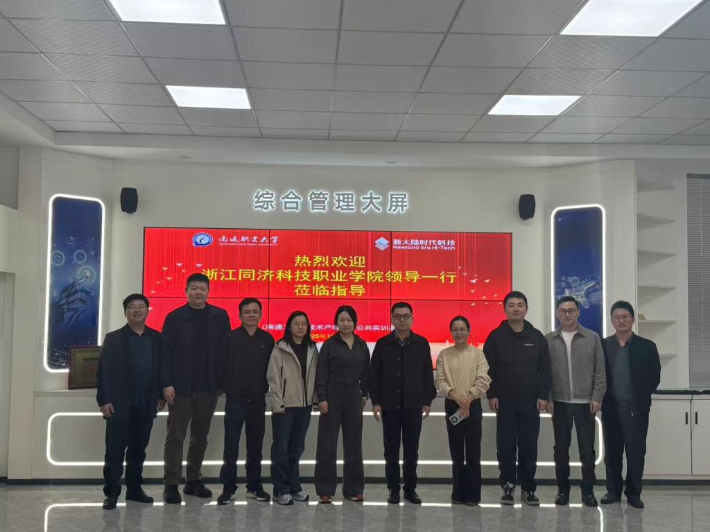 为深入贯彻落实国家关于职业教育高质量发展的决策部署,借鉴吸收同行业实训基地和产业学院的建设经验,促进产教融合,加强专业建设,助力高质量人才培养,11月7日,建工学院副院长李毅率领建筑智能化工程技术专业教师团队,前往南通职业大学人工智能与电子信息学院开展学习交流活动。南通职业大学党委委员宣传部部长廖忠智、人工智能与电子信息学院副院长王海峰、主任刘建兰、博士沈志华对学院一行表示热烈欢迎,北京新大陆时代科技有限公司江苏分公司区域主管袁帅、产教融合运营总监任红兵、浙江分公司销售经理张行臻全程陪同参观交流。
