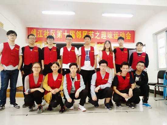 2016年10月15日,钱江社区举办第十届邻居节趣味运动会,水利系“小水滴”志愿服务队参加相关活动项目的志愿服务工作。
