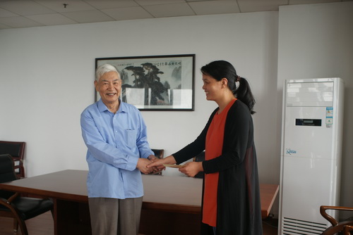7月6日上午,我校81岁高龄的浙江省“最美老干部”、2014年浙江省离退休干部先进个人邵在田老师冒雨来校,将他刚刚获得的“离退休干部先进个人”奖金捐献给我院机电系患病的学生徐浩剑。