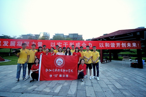 2015年7月15日,院团委暑期三下乡社会实践“花儿与少年”团队在团委副书记叶乐老师的带领下来到了美丽的建德新安江开展学“习”宣讲活动。