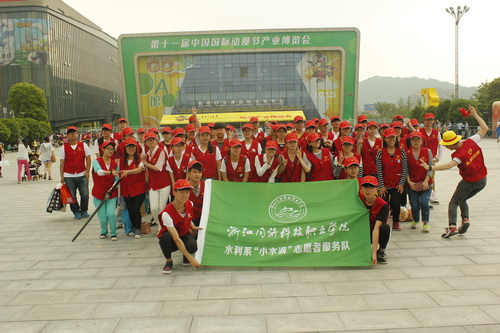 在刚刚闭幕的第十一届杭州国际动漫节,在微笑亭、在停车场、在售票处、在入口处,水利系“小水滴”志愿者们活跃在一线;为游人指路、为询问者解答疑问、疏导交通……志愿者们用自己的最美的微笑和周到的服务形成了一道独特的风景线。