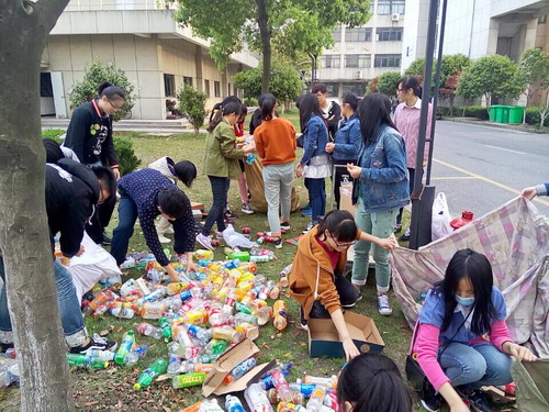 4月13日,水利系“小水滴”志愿者到学生公寓上门回收饮料瓶、废纸盒等废品并集中处理,为同学们提供了方便,使寝室环境更加整洁有序。