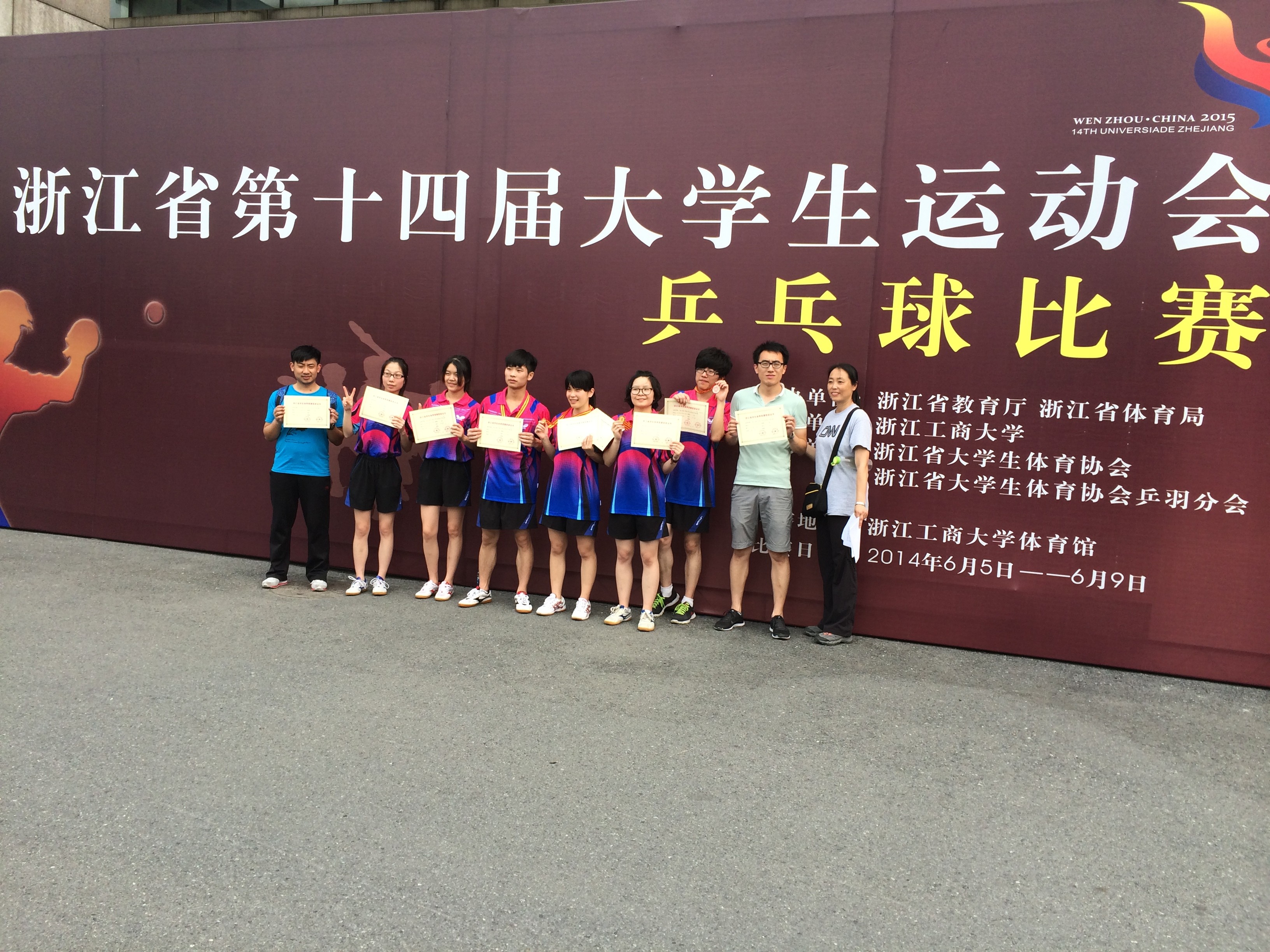 近日,浙江省第十四届大学生运动会乒乓球、羽毛球比赛落下帷幕。我院代表队在教练章永健、顾红伟、王文涛、陈正强老师的悉心指导下,与来自全省各高校的代表队展开激烈角逐。最终,在乒乓球赛事中,勇夺女子双打金牌,乙组男女总分第二、男子双打铜牌、男女混双第四名、女子单打第五名、女子双打第七名等奖项;羽毛球赛事中,获得女子双打铜牌、女子单打第四名、男子单打第五名,男女团体总分第四名的可喜成绩。两名队员被评为优秀运动员。
