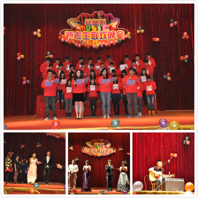 欢声笑语编织五彩的旋律,劲歌热舞宣扬悦动的青春。经过精心策划和准备,信息系2013新老生联欢晚会于12月11日晚在学院文体中心隆重举行。学院组宣部部长陈玉阳应邀出席,和系领导、辅导员、兄弟系嘉宾老师、老生代表、2013级学生们欢聚一堂,共同观看了晚会。