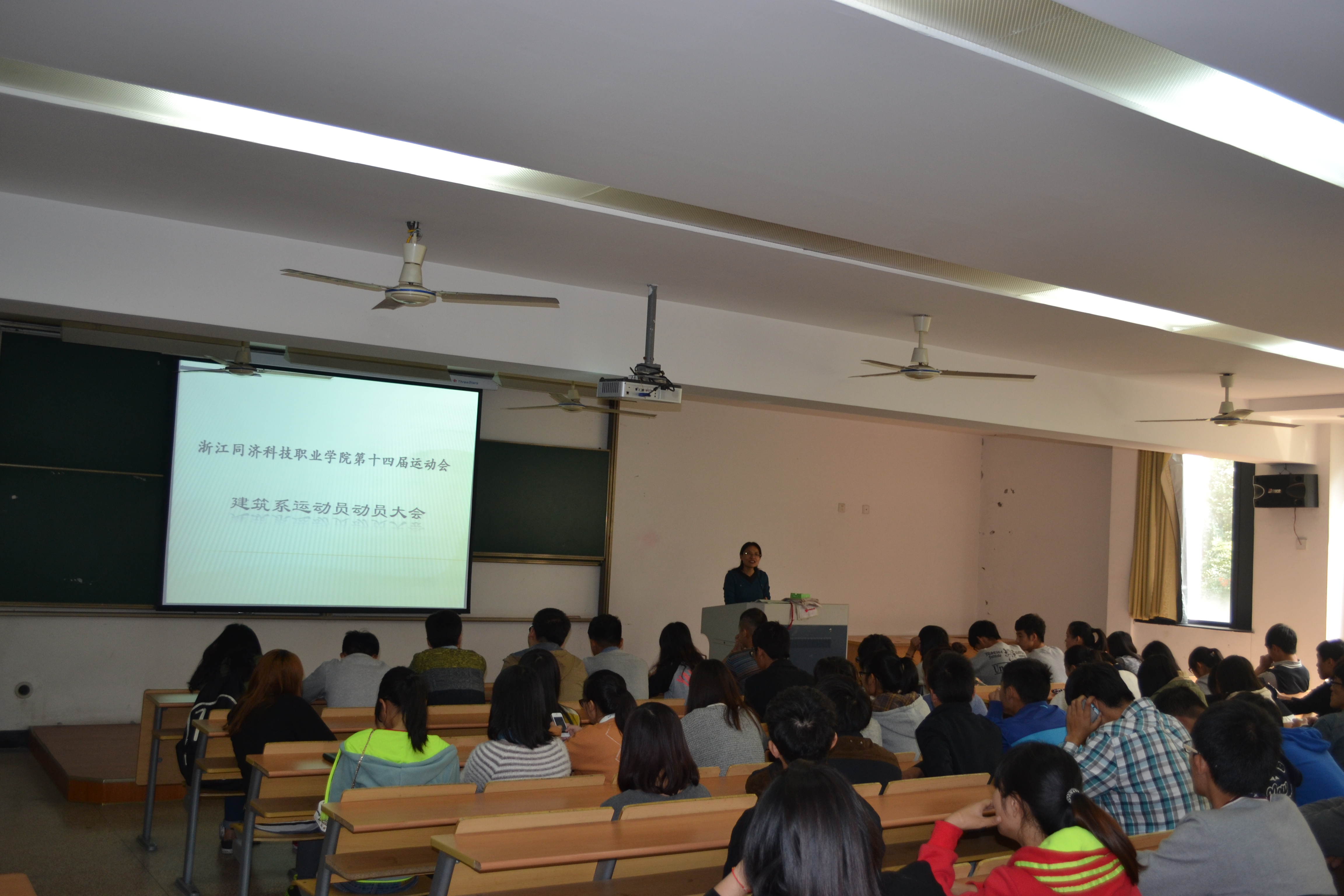 在学院第十四届运动会到来之际,为充分调动运动员的积极性,同时保障运动会期间各项工作有序进行,11月6日中午,建筑系运动员动员大会在A101顺利举行,系办公室主任周恺、系辅导员、系团学会学生干部及全体运动员参加本次会议,系党总支副书记方志英出席并讲话。