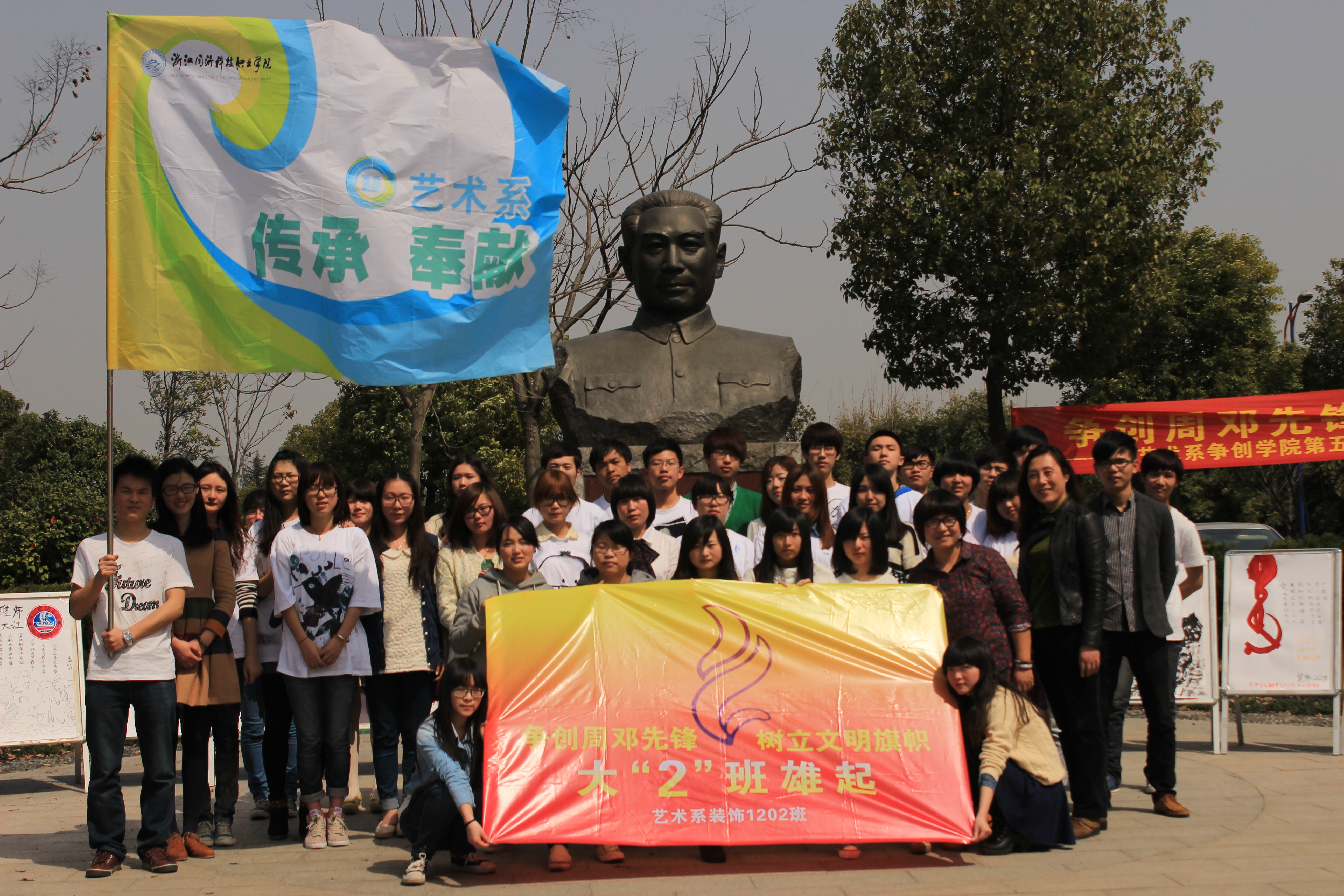 今年3月8日,是我们敬爱的周恩来总理诞辰115周年的纪念日子。艺术系为积极响应学院号召,学习伟人精神,争创周恩来、邓颖超班,是日下午,在学院周总理的雕塑前,艺术系举行了以“争创周邓先锋,树立文明旗帜”为主题的争创第五届周恩来、邓颖超班启动仪式。艺术系系主任王光华、党副总支书记杨莉莉、学院团委副书记叶乐及系辅导员出席了仪式。