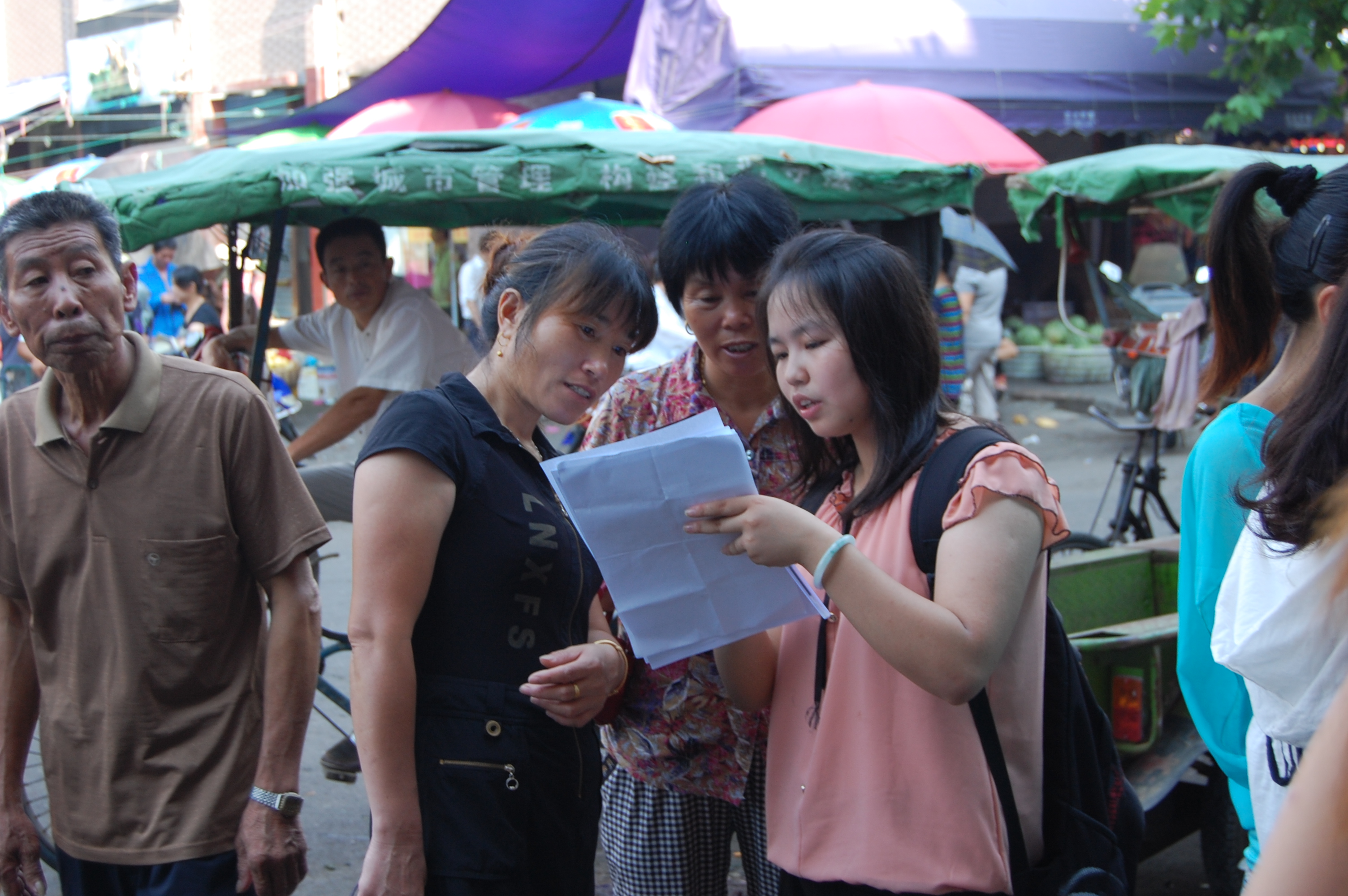 活动当天,队员们早早地起床前往象山石浦镇农贸市场,在当地农贸市场管理处和其他相关部门的大力支持下,活动前期的布置和宣传工作,井然有序的开展。活动过程中,来自镇上的居民积极参与活动,也高度关注食品安全问题,对此,队员们及时开展引导性宣传,申明此次宣传活动是在全国上下认真开展食品安全大检查的前提下,对曾经发生过的一些重大食品安全事件的回顾,食品安全问题确实存在,但没有必要引起恐慌情绪,但要在日常生活中要形成正确饮食的习惯等。随后,队员们还在现场进行了食品安全有关的采访调研。调研显示,95%的老百姓对食品安全非常关注,且有75%的人认为当前对食品经营企业的处罚和监督力度不够。同时,在宣传活动也得到了一些专家的指导和帮助,一位象山县施姓人大代表当场对我们的食品安全宣传工作给予了肯定和鼓励,表示政府也在认真研究和制定关于食品安全的相关法律法规等,作为民间宣传也十分有必要的。