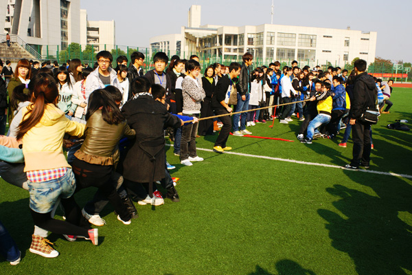此次趣味运动会共有两个项目:拔河比赛和两人三足快走比赛。拔河比赛以班级为单位组队,共有9个班级组成了各自的队伍参赛,赛前各队选手做好了充分准备,屏住呼吸静候开始的哨音响起,比赛期间加油声、呐喊声此起彼伏,响彻了整个操场。经过2个小时的激烈角逐,建筑经济管理11-01班、工程造价11-01班、网络系统管理11-01班分获一、二、三等奖。在两人三足快走比赛项目中,同学们自由组队参加,两人一组,用一根绑腿绳在双方踝关节处系两圈合作朝着目标终点奔跑,因参赛者腿部受到束缚,奔跑时的姿态迥异,引起了观众一阵阵笑声,经过紧张刺激的比拼,决胜出了该项目的男女生组的前三名。