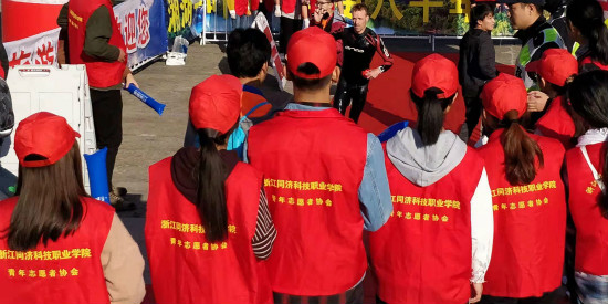 10月28日,2018 STC大铁联赛之杭州湘湖铁人三项赛于杭州湘湖定山广场举行。本次活动由湘湖国家旅游度假区管协会、杭州市萧山区体育馆、杭州市萧山区旅游局联合主办。全球20个国家级地区共551名运动员参加,我院经过前期紧张地招募以及岗前培训,共100名志愿者参加此次志愿服务。
