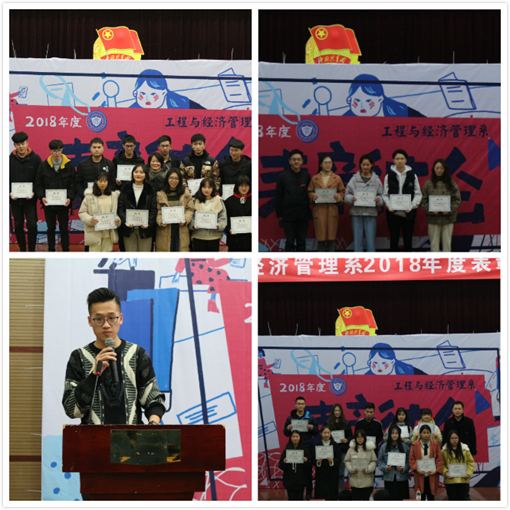 1月9日下午4点30分,工程与经济管理系2018年度“青春正能量,共筑同科梦”表彰大会于图书馆一楼报告厅举行,工管系副主任景秀眉、系党总支副书记周恺、系办公室主任张春平以及18级全体学生和17级全体班委参加本次表彰大会,大会由18级学生孔宣杰和商心怡主持。