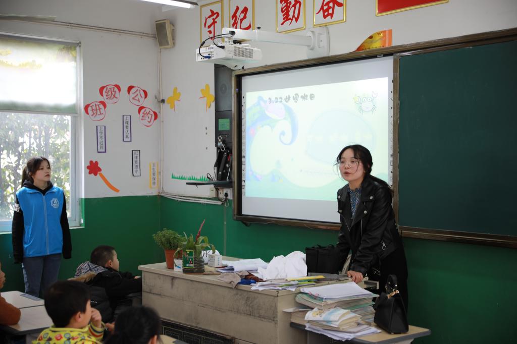 活动开幕式上志愿者代表李天宇提出倡议,倡导全体志愿者积极投身治水行列,发挥先锋模范带头作用,为萧山区“节水、护水”事业贡献自己的一份力量。开幕式后,志愿者们分组进入18个班级同时开讲节水护水课。课堂上,小朋友们在哥哥姐姐的带领下认真地学习节水、护水知识,积极回答问题,我系志愿者还辅导小朋友们画出自己心中对节水护水的理解。