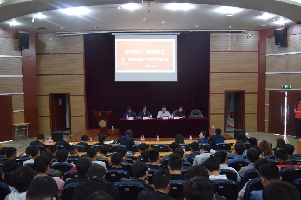 伴随着初夏微煦的阳光,毕业季的节奏悄然而至,5月7日上午,建筑工程系在学院图书信息楼报告厅举行“浓情有你,爱在建工”—建筑工程系2019届毕业生大会。出席大会的有建筑工程系党总支书记方志英、副主任杨海平、系办公室主任周鹏,各专业部主任、毕业班班主任、辅导员以及全体毕业生。