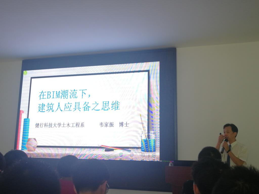 2019年5月17日下午1:30建筑工程系“鲁班大讲堂-特别篇”邀请台湾健行科技大学韦家振博士做题为“在BIM潮流下,建筑人应具备之思维”的讲座。