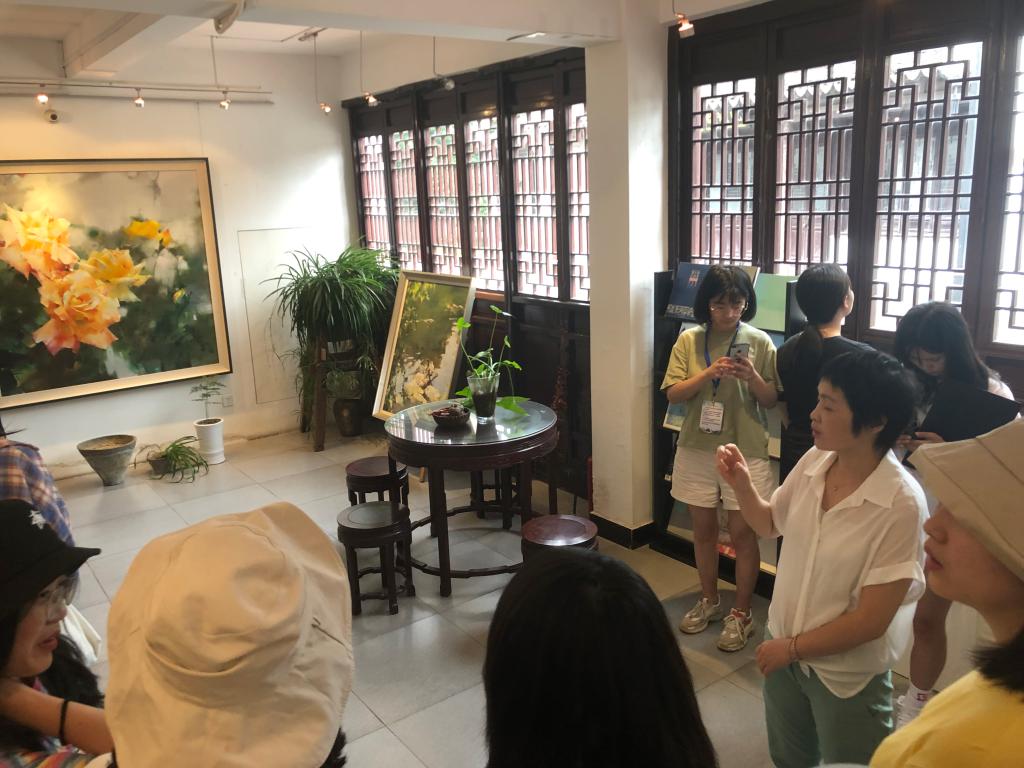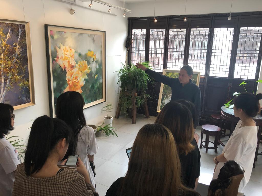 写生过程中邀请著名画家陈二夫先生给学生讲学。陈二夫先生是中国当代新锐画家,其作品多次在海内外展出,并被广泛收藏。他带领学生参观他的个人艺术馆,在分析艺术作品时,他谈到了写生的意义。写生不是坐在某个角落,对着图片画画,而是真真切切地走进一个地方,了解当地的风土人情、文化底蕴、雅致古朴的传统建筑等,再进行创作,才能成就有思考有沉淀有深度的艺术作品,使自己的艺术能够真正反映时代的发展。讲学过程中,陈二夫耐心地分享了他绘画的技巧和方法,学生们听得津津有味,受益匪浅。