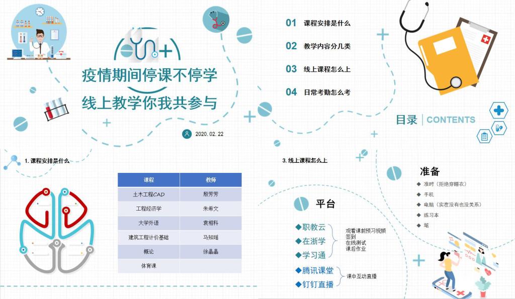为进一步做好思政教育和疫情防控工作,充分发挥青年学生在打赢疫情防控阻击战中的作用,建工系6名辅导员和24名班主任将思政课堂搬到了线上,纷纷化身“业余主播”,通过腾讯、钉钉、QQ、微信等平台,面向30个班级、1200余名学生开展“疫情期间停课不停学、 线上教学你我共参与”主题班会。