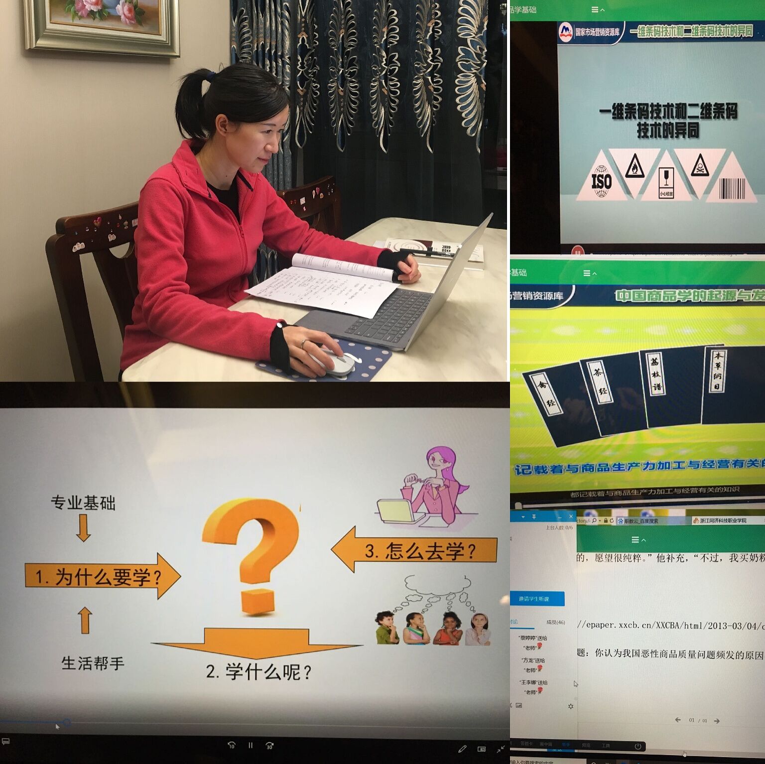 专业部6位老师积极主动开设线上课程,于2月24日如期与学生们“见面”。从线上教学的形式到教案课件的准备,再到网络课堂的建设与互动,都是一次全新的挑战。老师们积极探索,克服重重困难,认真准备,保障了在线直播的顺利进行。苏志军老师为上直播课程加装了宽带,周聪老师为准时开课把女儿留在老家只身返杭,还新购置了一台笔记本电脑。由于网络不稳定、在线教育平台卡顿等情况,有的老师担心得夜不能寐,开课前不断确认,测试,直到平台正常运行,一颗悬着的心才算真正放下。徐骏骅老师还代表工管系参加了全校首批在线公开课。