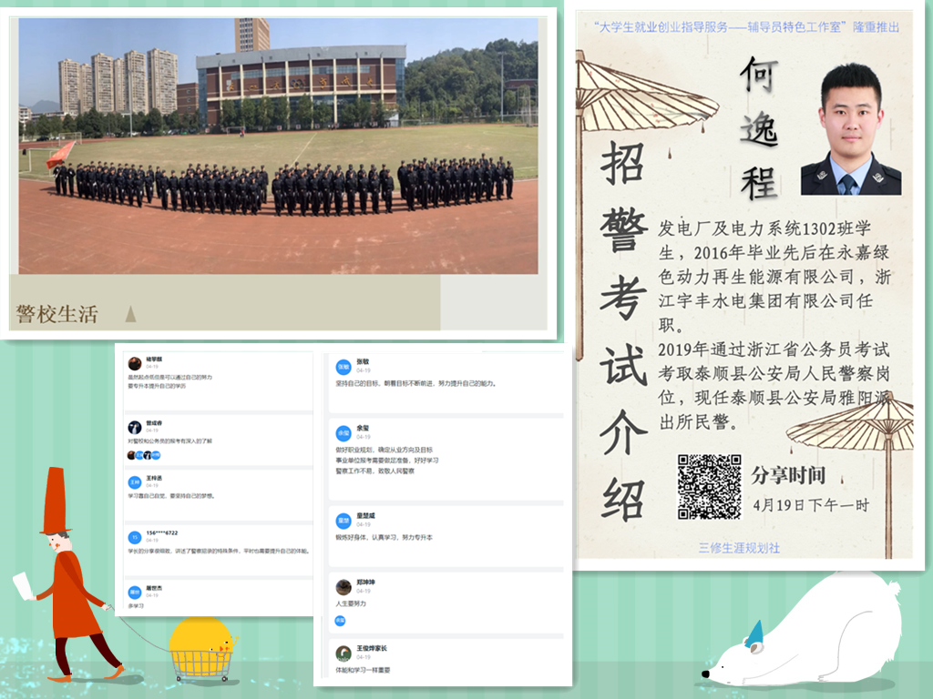 为了让同学们了解公安警察职业,同时也给同学们拓宽就业的视野,增加就业选择的机会。4月19日下午1时,机电系辅导员特色工作室与三修生涯规划社,邀请优秀校友代表、原电力1302班何逸程先生,通过钉钉直播的方式,在线分享了他的警察招考求职经历。本次线上分享会由机电系辅导员方昉主持。