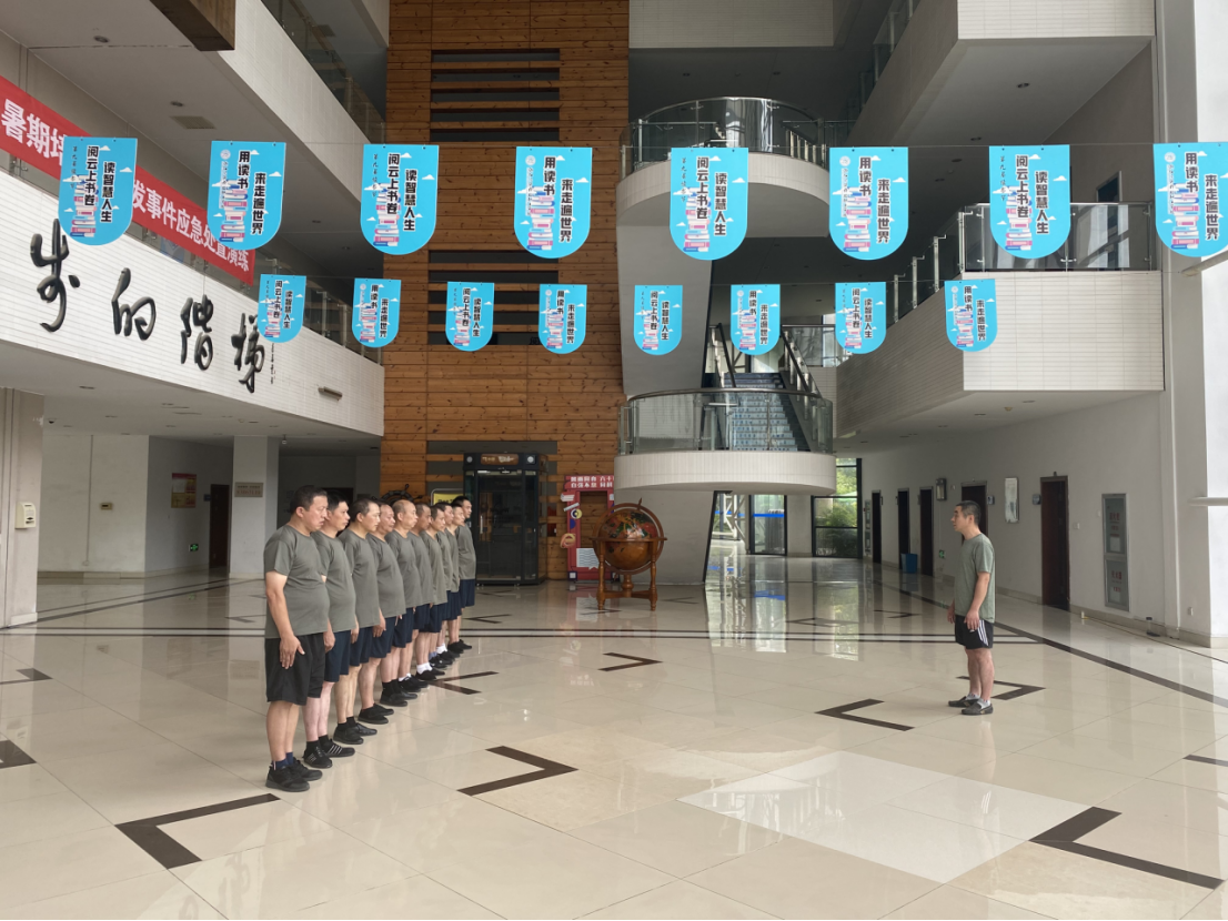 7月31日下午16:00,召开校卫队暑期训练小结会。张文炜检阅了校卫队队列、灭火、模拟反恐,运用钢叉、防暴盾、警组合术,3分钟有效应对制服“暴徒”,夺下“凶器”等训练成果。他对校卫队员的辛勤付出,临危不乱以及培训活动取得的效果给予充分肯定,要求全体队员以此次集训为契机,继续发扬不怕苦、不怕累,纪律严明的作风,坚守安全工作底线,牢固树立安保工作责任,运用所学活学活用,提升应对校园应急突发事件的能力,提高各类重大活动任务的保障能力,维护校园政治稳定、治安安全。