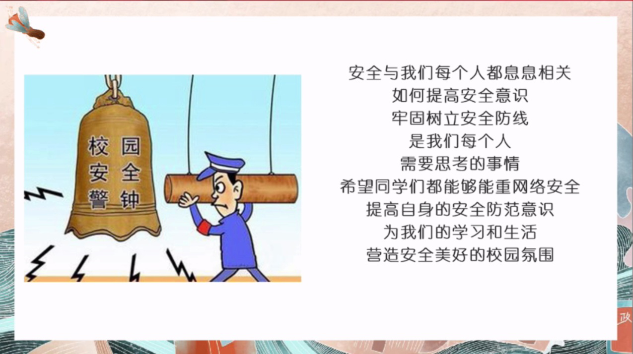 最后,徐警官阐述了“希望同学们平安顺利的度过自己的学生时代”的期盼,讲座在热烈的掌声中结束。