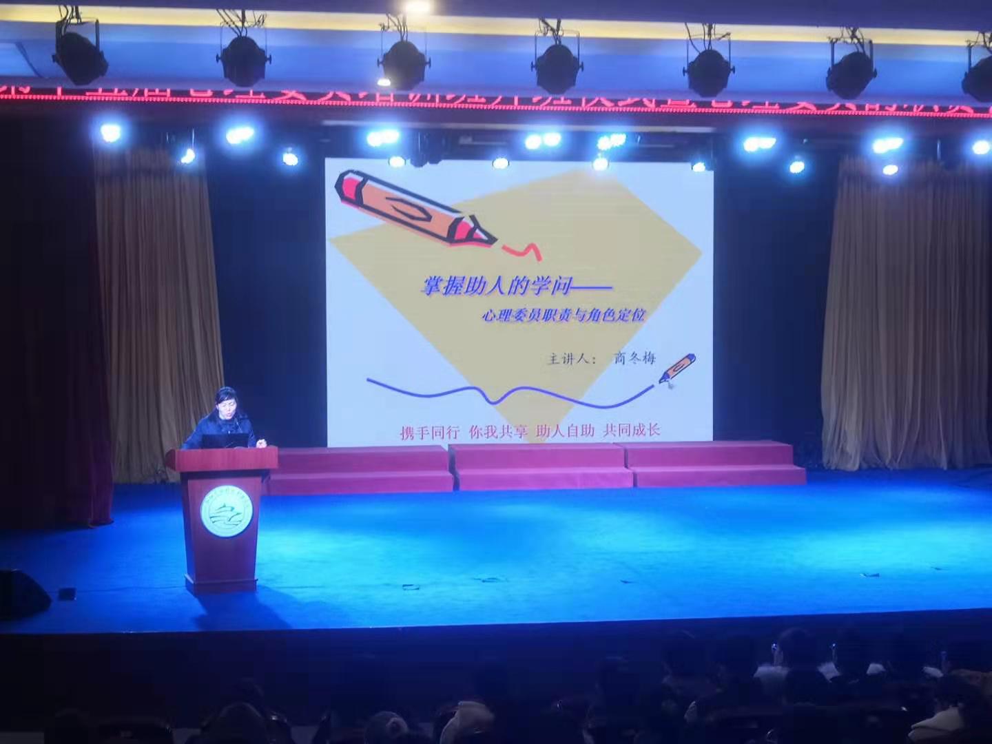 最后,学院心理健康教育指导中心商冬梅老师作了题为《掌握助人的学问---心理委员的责任和角色定位》的专题培训。