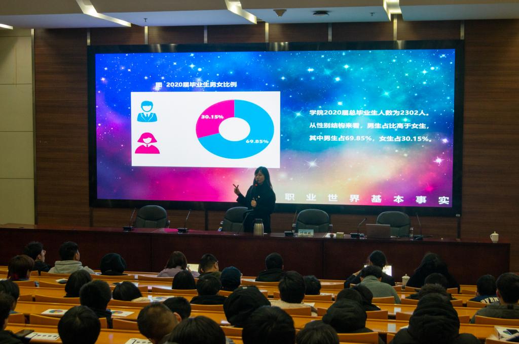 2020年12月29日,同科大讲堂第三十四讲“了不起的你——唤醒生涯规划意识、开启全新一年”在行政楼一楼报告厅成功开讲,各系学生代表150余人到场聆听。本次讲座邀请杭州电子科技大学招生就业处叶琛琰老师主讲,叶老师是全国生涯专家库成员、BCC全球生涯教练、GCDF全球生涯规划师,杭州市师友计划导师,高校职业发展与就业指导高级讲师,在开展个体咨询、个案案例撰写方面有着丰富的经验和独特的见解。