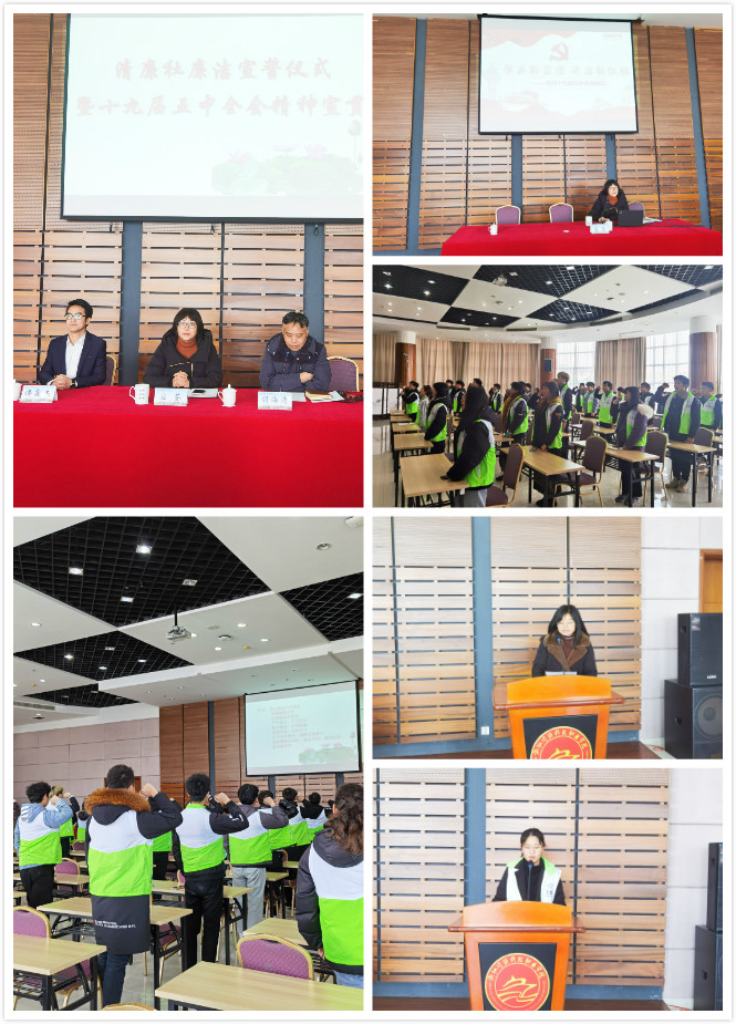 为深入学习贯彻党的十九届五中全会精神,进一步推动全会精神进课堂、进头脑,12月30日,学院纪委为新一届清廉社社员开展了学习“十九届五中全会精神”专题思政课和廉洁宣誓仪式活动。学院纪委书记应芬出席,纪委办全体成员、团委相关负责人和清廉社全体社员参加。