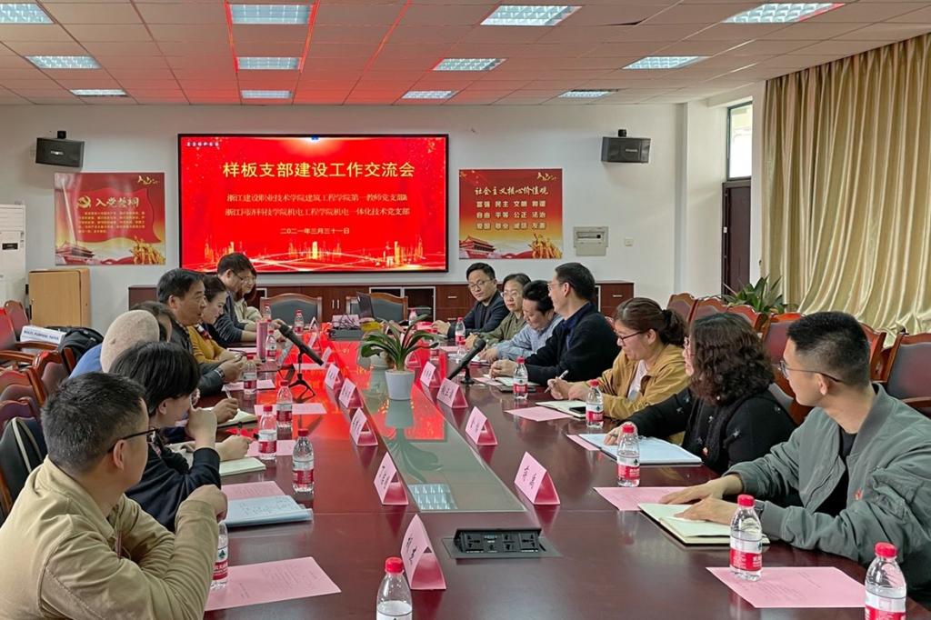 为进一步加强党支部建设,创新党建工作载体和方法,提高党支部的创造力、凝聚力、战斗力,3月31日下午,学校样板支部机电一体化技术党支部赴浙江建设职业技术学院建筑工程学院开展“校校结对  支部共建”主题党日活动。学校副校长朱兆平,机电学院党总支书记、院长金永琪,党总支副书记章卉,组织员及机电一体化技术党支部全体党员参加了共建活动。