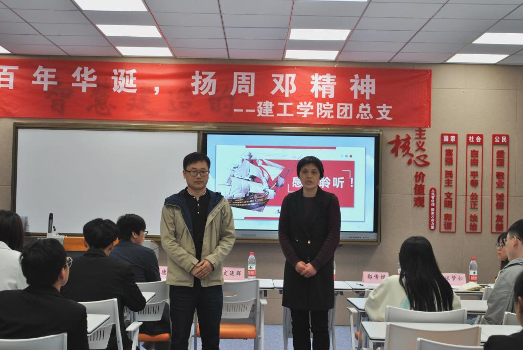 情系人民唯忘己,勇创周邓慰伟人。2021年4月20日12:00,建筑工程学院第十三届周邓班预选评审会在钱江楼C315顺利举行。建筑工程学院党总支书记蒋晓冬、辅导员郑传娟、肖德彬、张梦如和文晓辉作为评审嘉宾应邀出席此次评审会,参加本次大会的还有我院19级部分团学干部、20级部分学生观众。本次大会由文晓辉老师主持,本次评审会的主题为庆百年华诞,扬周邓精神。