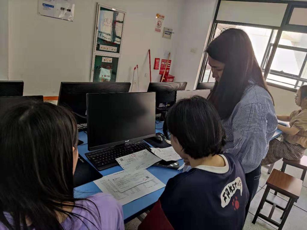 仪式后会计主管龚玉玲和会计党支部教师们以及参与实操集训的学生们进行了一对一的深入交流,并带领学生们共同深入学习讨论如何审核企业的会计凭证。会计党支部以共建生产性工作室为平台,开展真账实操,积极为基层提供技术服务,也为学生提供真实的账务处理实操机会,用实践活动来学习党史、为民办实事。