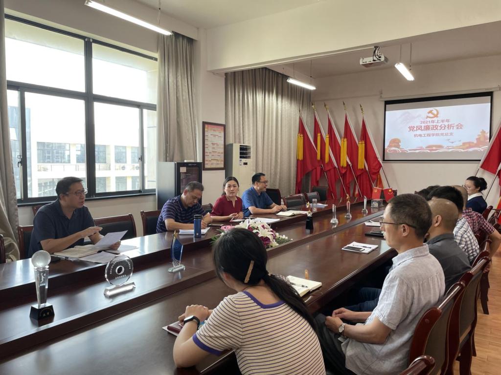 6月23日下午,机电工程学院党总支在钱江楼513会议室召开2021年上半年度党风廉政建设分析会。学校纪委副书记、纪委办公室主任于会泉,机电工程学院党总支书记、院长金永琪,总支委员,各支部书记,专业部主任,实训基地主任参加了此次会议,会议由学院党总支副书记章卉主持,重点围绕机电工程学院上半年廉政风险防控工作进行了汇报和讨论,营造风清气正校园环境,全力打造“清廉同科”。