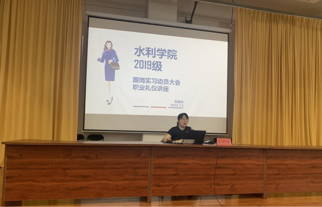 为加强学生对跟岗、顶岗实习的认识和了解,7月5日上午,水利学院在瓯江楼报告厅召开2022届学生实习动员大会。会议由水利学院教学秘书施鸿主持,学院副院长金斌斌、辅导员朱松挺、相关教师、大禹2020班学生及22届全体学生参加了会议。