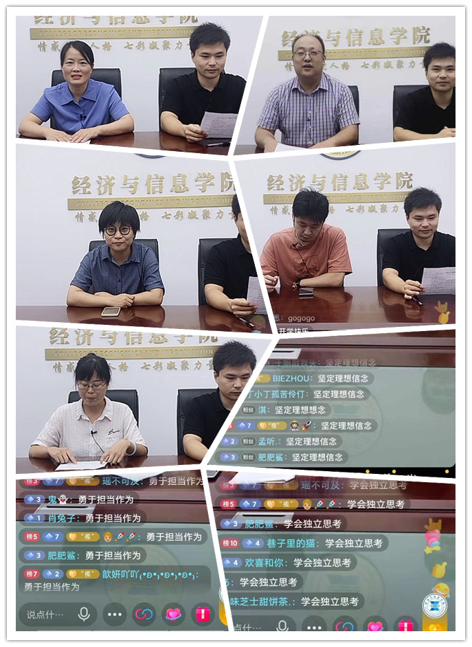 因疫情防控要求,为确保学院师生健康安全,经信学院21级新生典礼于9月19日下午在“视说新语”抖音平台在线直播。学院领导、各专业部主任、辅导员、新老生代表参加,全体新生在线观看。直播由辅导员韩光耀主持。