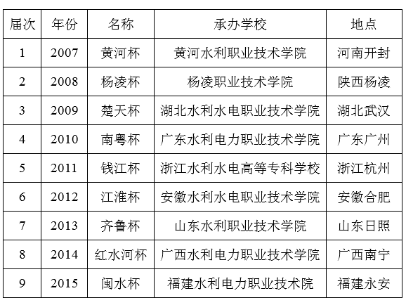 附:历届全国水利高等职业院校技能大赛命名一览表