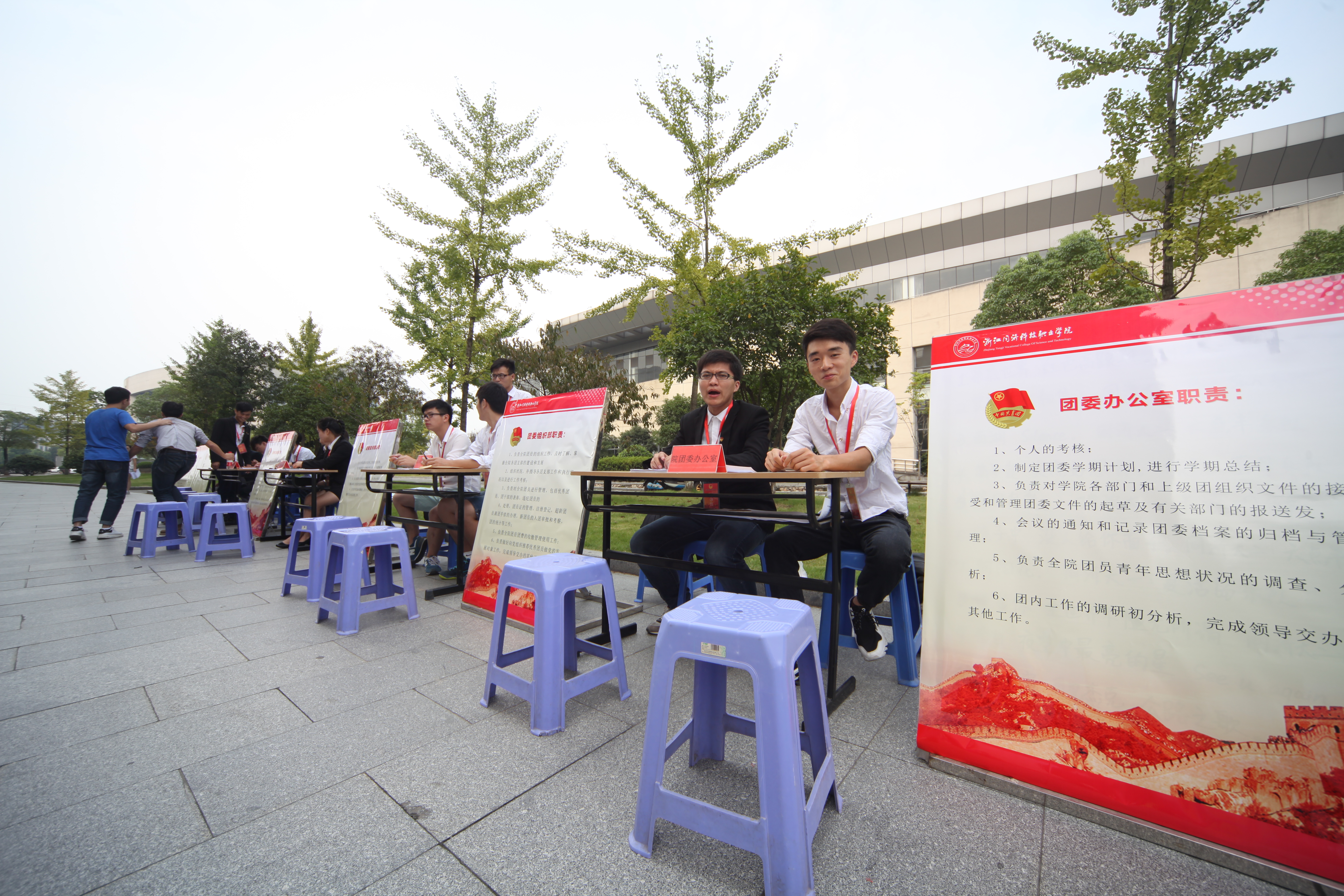 新学年新气象,9月17日中午,位于建筑艺术楼前的招新地点摩肩接踵,各招新部门前介绍和宣传声此起彼伏,2015-2016学年团学组织纳新会火热进行。 团委、学生会、学生社团联合会、大学生公寓管理委员会精心筹备此次活动,为吸引更多新鲜血液,各部门精心装扮各自的大本营,利用海报、宣传单、微博、微信等宣传渠道进行招新宣传,各部门招新位前气氛良好。各部门宣传员积极主动地向同学们介绍本组织各部门工作职能,宣传工作理念,为同学答疑解惑。在大家的努力下,前来报名的同学络绎不绝,热情高涨。 报名工作结束后,在未来几天将统一组织笔试和面试,通过严格的筛选以及层层选拔,为学院新学年的学生工作补充新生力量,新鲜血液。这些新生将以学院未来主人翁的姿态给学院带来新希望。