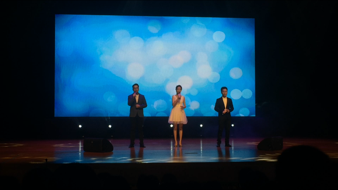 本场比赛参赛队伍52支,因参赛人数较多,前三十位参赛队员于当天下午进行比赛,剩余队员则定于当晚18:00。伴随好声音导师美妙的歌声,上半场结束。下半场,随着优美的开场曲目,迎来我校三名参赛选手组成的“三克油战队”,他们昂首挺胸走向舞台中央,俊男俏女一字排开,让大家眼前一亮。他们带来一首“You raise me up”,女声伴着男声,气势磅礴交织着天籁之音,观众欢呼雀跃。