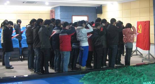 2011年1月11日中午,水利系党总支召开了新党员入党宣誓大会,部分正式党员重温了入党誓词。会议由水利系党总支委员、水工支部书记胡小建主持,系党总支副书记沈自力、各党支部书记、3名教师党员、38名学生党员出席大会。