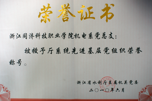 学院机电系党总支于2010年6月被浙江省水利厅直属机关党委授予“厅系统先进基层党组织”荣誉称号。