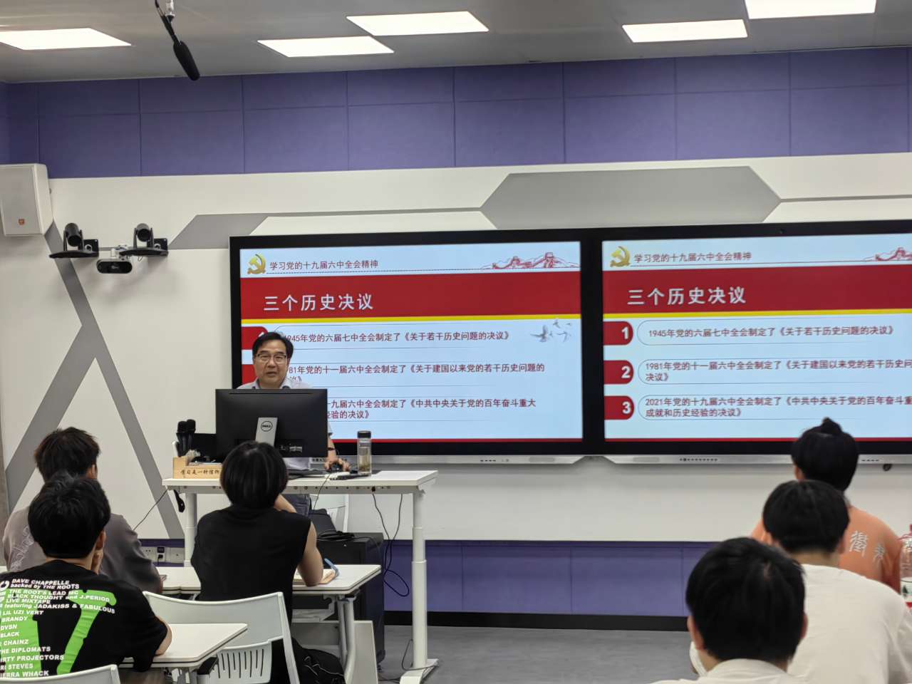 课上,梁校长围绕十九届六中全会精神及《中共中央关于党的百年奋斗重大成就和历史经验的决议》提出的重大论述和创新性理论,从百年奋斗为国家和民族建立的伟大历史功绩,新时代的历史性成就和历史性变革,百年奋斗对新时代大学生的宝贵历史经验三方面进行了讲述。梁校长结合自己在红旗下、春风中的成长经历,将党的千秋伟业与百年风华徐徐展开、娓娓道来,不仅让同学们对百年发展历程有了清晰的认识,更提高了同学们对党和国家的路线、方针和政策的认同感。