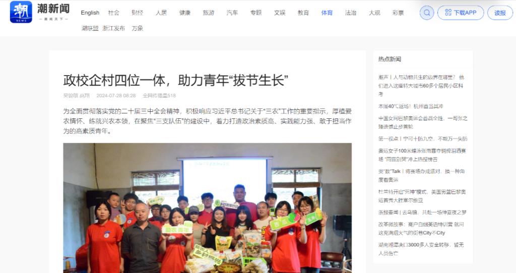 为厚植高校师生爱农情怀,探寻青年发展与乡村振兴的“双向奔赴 ”。近日,经信学院“青年助农”实践团前往丽水市青田县舒桥乡开展乡村振兴实践活动,被“潮新闻”平台报道。